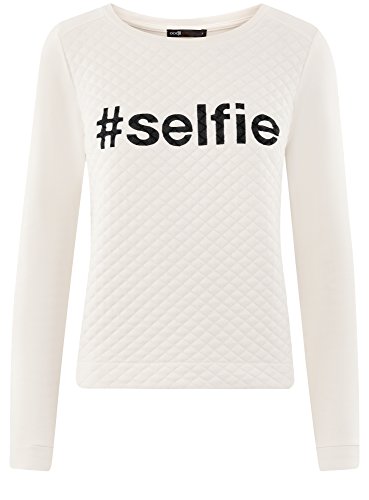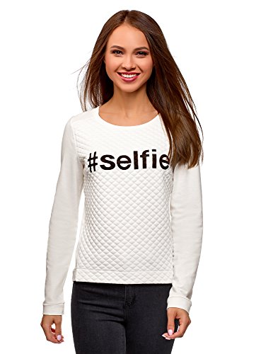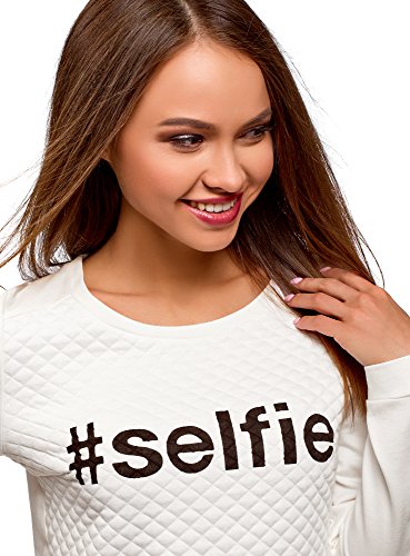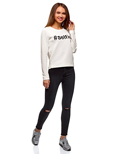 oodji Ultra Mujer Suéter de Tejido Texturizado con Inscripción, Blanco, ES 40 / M