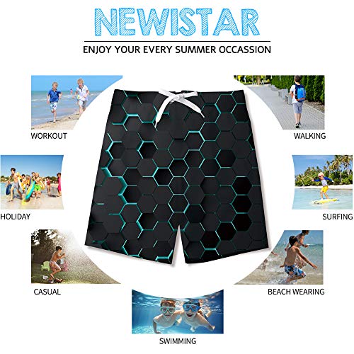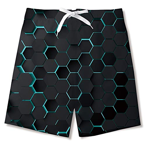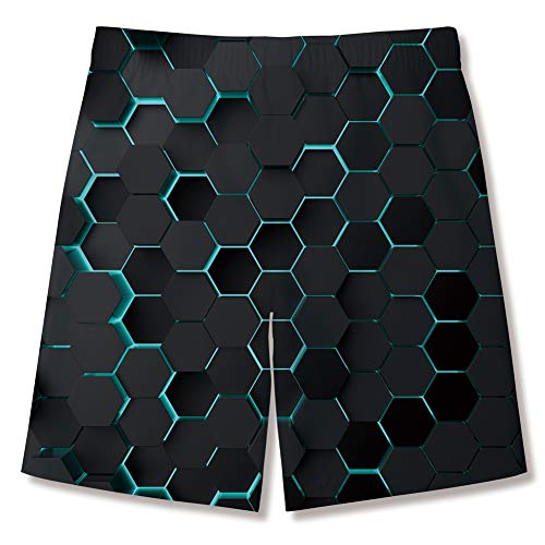 NEWISTAR - Bañador para jóvenes con impresión 3D, secado rápido, con forro de malla, para verano, playa, pantalones cortos de natación, para jóvenes de 8-16 años A-honeycombs 10-11 años