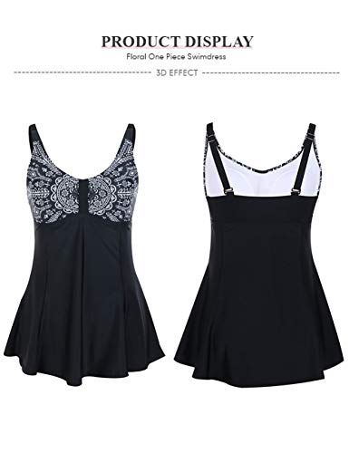 FeelinGirl Traje de BaƱo de 1 Pieza - Mujeres Tankini Vestido Estampado Floral Talla Grande BaƱador Tirantes Ajustables Negro L:Talla-42