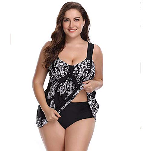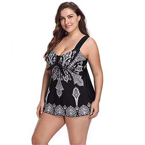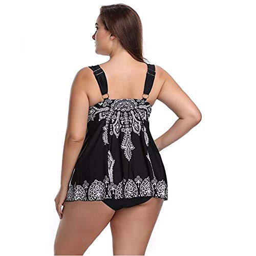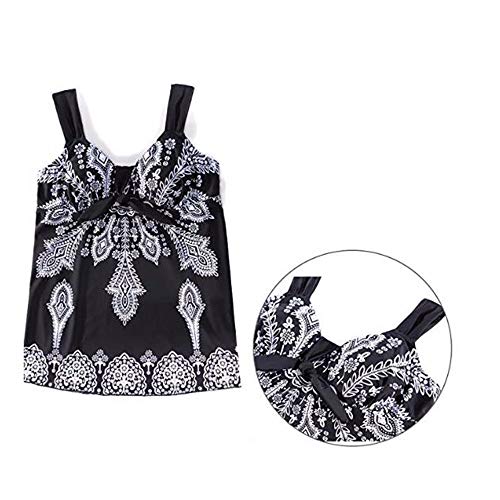 Divgdovg Conjunto Bikini Mujer Dos Piezas Estampado Falda Verano para Playa Ropa de BaƱo Punto Floral Sin Manga Tirante Talla Grande Tankini Falda Y Pantalones Cortos Conjuntos,Negro,68(105-115kg)