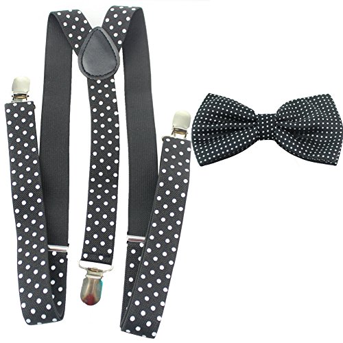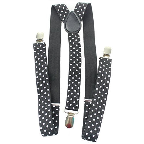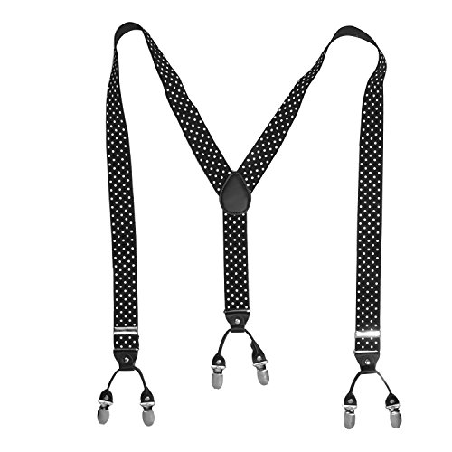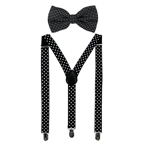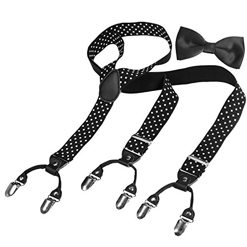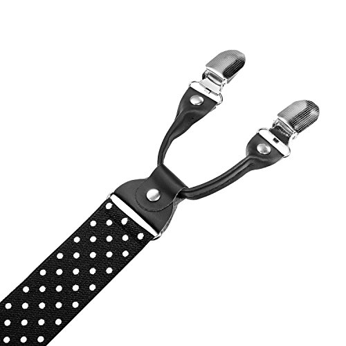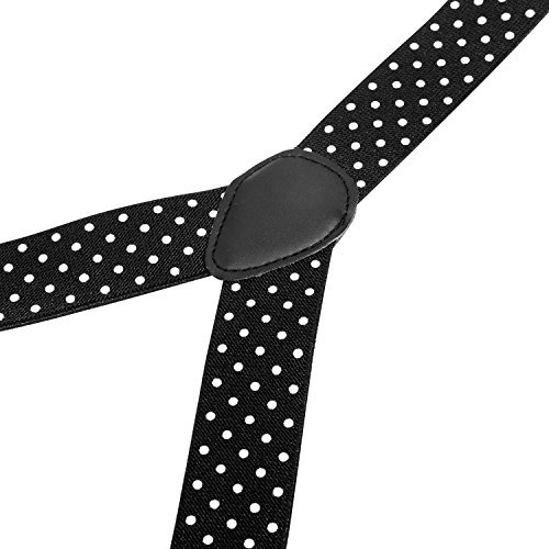 HBF 1 Conjunto Tirantes Y Pajaritas Unisex Elástica Ajustable Y-Forma 4 Clips/6clips Ancho 3.5 Cm Para Hombre Y Mujer (negro y blanco lunares)