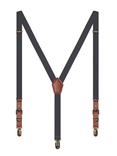 Irypulse Tirantes Retro con 3 Clips Latón Clásico para Mujer Hombre y Adolescentes Y-Forma Longitud Ajustable Elástico Ajuste para Altura 150-180 CM - Gris oscuro