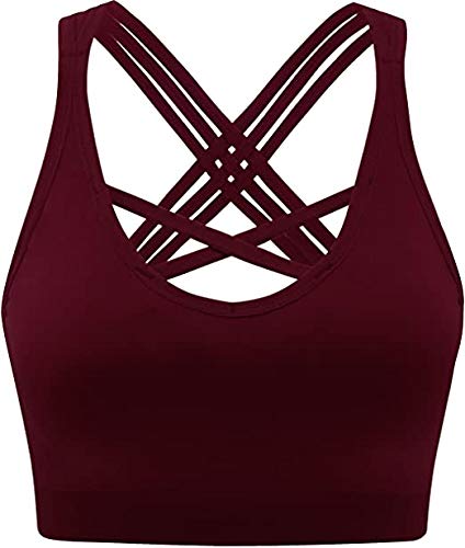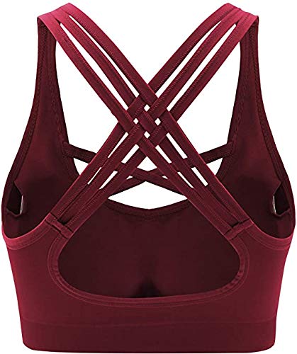 YIANNA Sujetador Deportivo Mujer con Relleno Extraíble Sujetadores Deportivos Top Deporte Yoga Fitness sin Aros Rojo, YA139 Size M