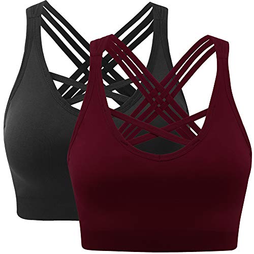 ANGOOL Sujetador Deportivo Cruzados Espalda Almohadillas Extraíbles Yoga Run Bra para Mujer