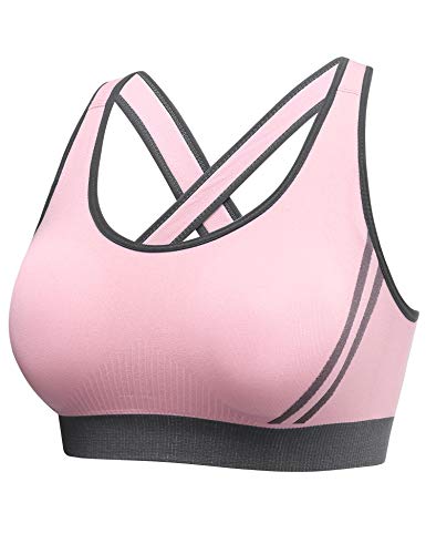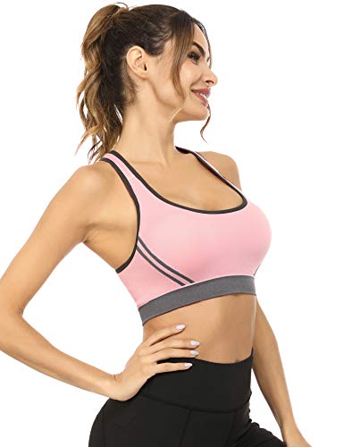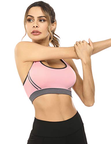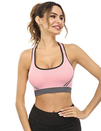 Hawiton Sujetador Deportivo Mujer Sujetador de Soporte Alto Impacto Sin Costuras Desmontable Sujetador Yoga Bra Push up Top Deportivo Sujetador para Fitness Correr Gimnasio Bailar Niña, Rosa, M