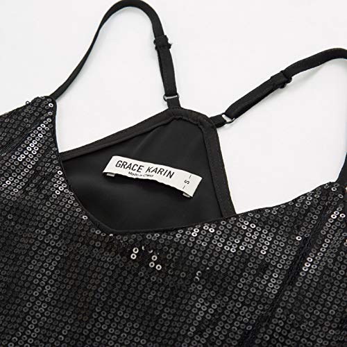 GRACE KARIN Camiseta de Tirantes para Mujer de Lentajuelas Top Brillante para Fiesta Negro M