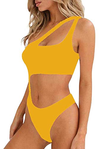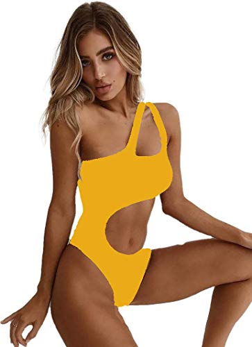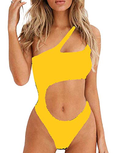 Ducomi Joy Traje de BaƱo de una Pieza para Mujer - Traje de BaƱo Completo - Bikini de un Solo Hombro Cut-out, Top Push Up y BrasileƱo - Ropa de Playa Sexy para Mar y Piscina (Amarillo, M)