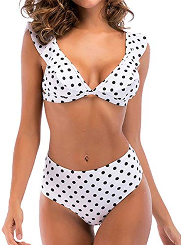 - ?CaracterĆstica ļ¼ Cuello en V profundo, Correas con volantes, Desmontables Sujetadores acolchados blandos que no se asoman ni se moldean, tenĆa dos ganchos de cierre ajustables en la parte posterior para adaptarse, el traje de baƱo Cute Polka Dot nunca estĆ” anticuado.