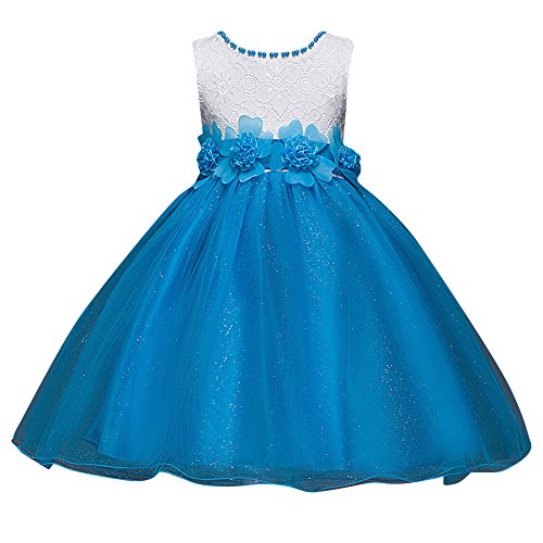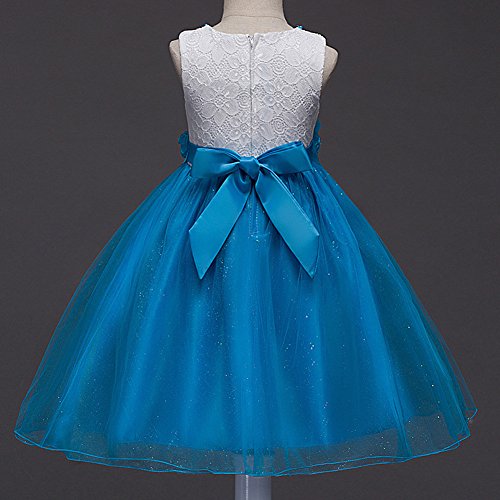 Qitun Bebés Niñas Vestido Floral De Tutú Princesa Traje De Fiesta Formal Elegante para Boda Cumpleaños Festividades Cielo Azul 150