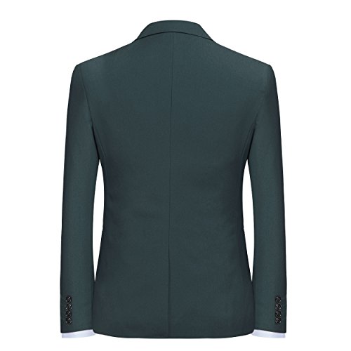 Traje de 2 piezas para hombre compuesto por chaqueta y pantalones, ajuste estrecho, para boda, cena,negocios, casual, disponible en 10 colores Verde verde oscuro Large