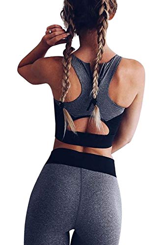 C K CrisKat Conjunto Deportivo Femenino Sujetador y Pantalones de Yoga Traje Deportivo Conjunto de Leggings y Sujetador Deportivo Conjunto de Yoga Sólido sin Costuras para Fitness (L, Gris)