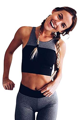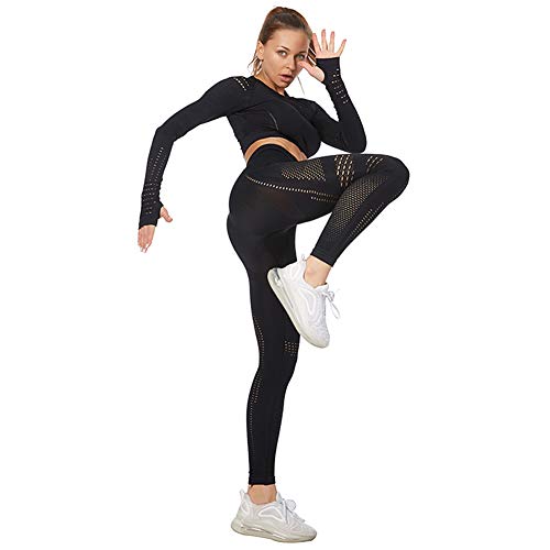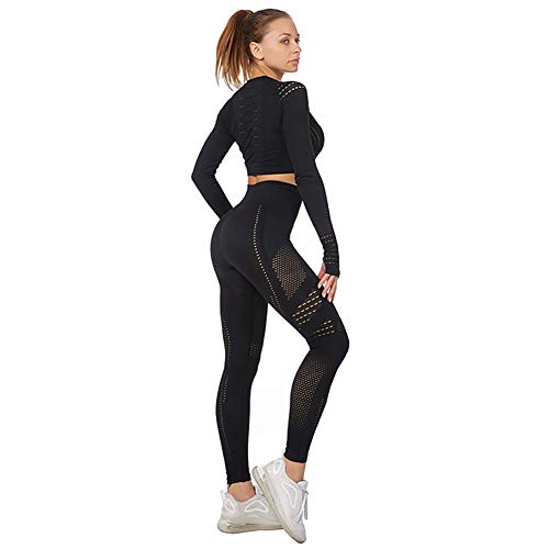 Jamron Mujer Conjunto de Ropa de Yoga Top Corto + Polainas 2 Piezas Chandal Gimnasio Fitness Ropa Deportiva Negro SN05405 S