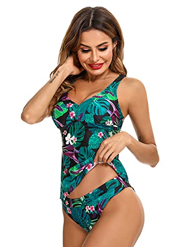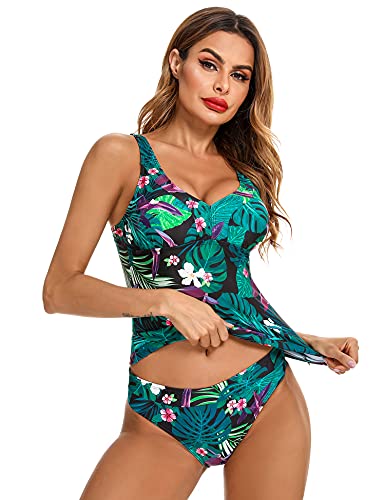 Doaraha Tankinis Mujer Traje de Baño de Dos Piezas Tankini y Breifs Diseño de Flores Conjunto de Bañador para Playa, Piscina, Vacaciones,Fiesta
