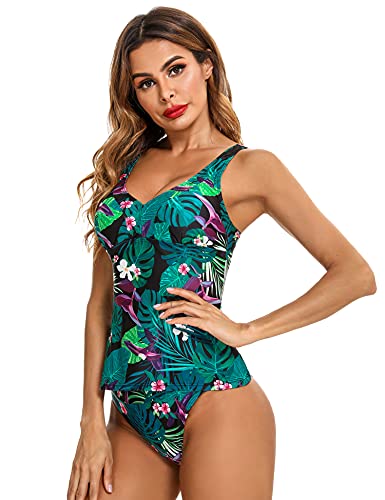 - 【Traje de Baño en Dos Piezas para Mujer】Estilo elegante y sexy en color liso y escote en pico estampado, Tankini sin aros, copas ligeramente acolchadas para soporte, tirantes ajustables, cabestrillo o cruzado para llevar. Reunidos en el panel frontal para ocultar mejor tu barriga y hacer que luzca más delgada.