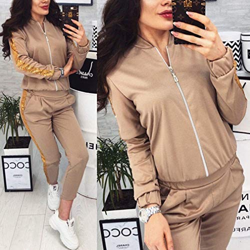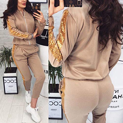 Yying Juego de Chándal con Brillo para Mujer Conjunto de Dos Piezas de Otoño Conjunto de Top y Pantalones Conjunto de 2 Piezas Trajes de Mujer Ropa Deportiva para Mujer Chándales