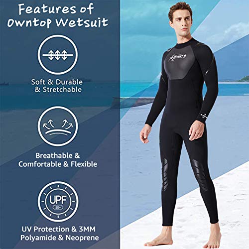 Owntop Trajes de Neopreno para Hombres Mujeres y Jóvenes - Traje de Buceo Completo, 3mm Espesar Mantener Caliente Trajes de Surf Natación UV 50+ Traje de Baño, L