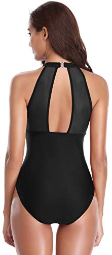 SHEKINI Traje de Baño de Una Pieza Mujer Halter Elegante Trajes de Baños para Mujer Alta Cintura Push Up con Aro (XXL,Negro-3)