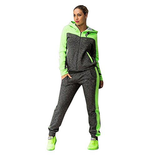 SHOBDW Sudadera con Capucha para Mujer Diaria Conjunto de Dos Piezas Patchwork Invierno Chaqueta de Manga Larga Trajes Deportivos Chándales Pantalones de chándal 2PCS (Verde,L)
