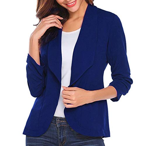 DEELIN La Moda De La Mujer Profesional OL Estilo De Tres Mangas Blazer Elegante Delgada Chaqueta De Cuello Blanco (L, Azul)