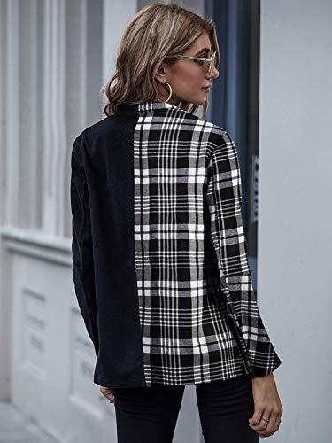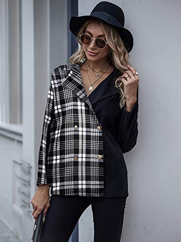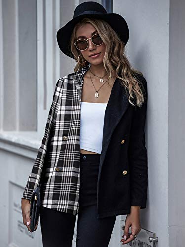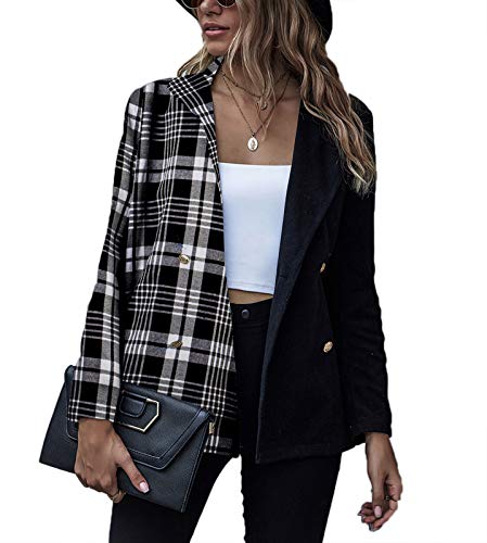 hellomiko Mujer Tweed Tartán Blazers Chaqueta Moda Trabajo Office Lady Traje Doble Botonadura Negocio Vintage Solapa Abrigo de Traje