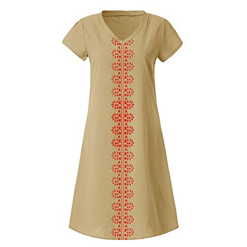 Aini Vestido con Cuello En V Vestido Corto De Manga Corta con Estampado De Verano Falda De Lino De Playa De Gran Tamaño,Vestido De Color SóLido De Las Mujeres Botón Midi Vestido Verano Vestidos