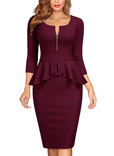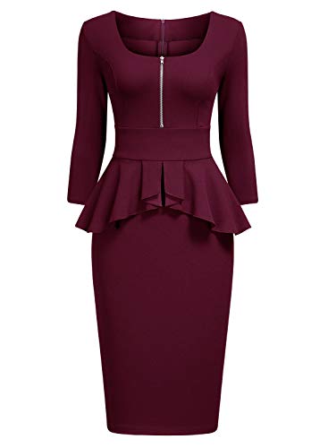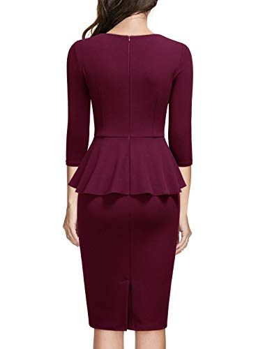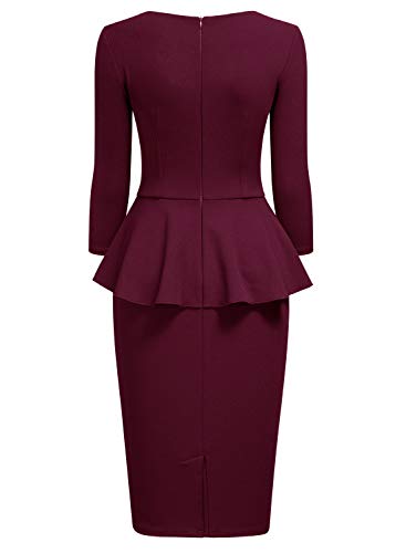 Miusol Negocios Peplum Lápiz Vestido de Fiesta para Mujer Borgoña XX-Large