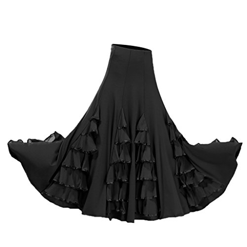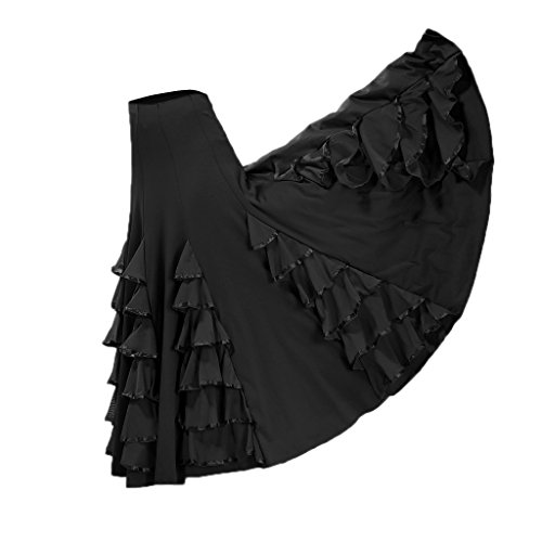 Dolity Traje de Baile Flamenco Baile Vals Vestido Largo Falda Larga de Chicas - Nero, 60-105cm