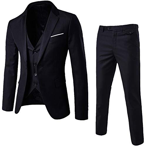 Traje de 3 Piezas con Chaqueta, Chaleco y Pantalones, Hombre,Slim Fit, Ajuste Moderno,Fiesta de Bodas de Negocios de Gusspower