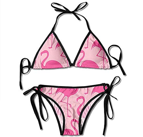 Bikini traje de baƱo para mujer, diseƱo de flamencos de dos piezas para novia, viaje, halter, con volantes Estilo1 XL