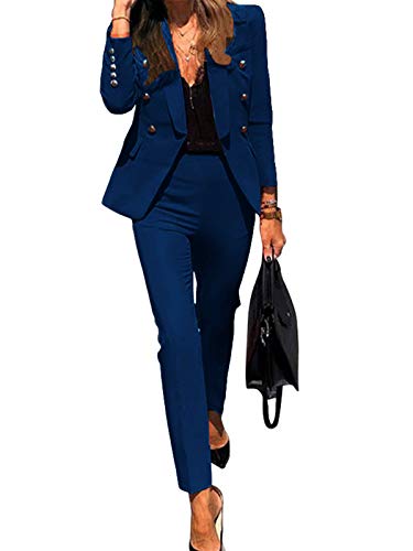Minetom Mujer Blazer Y Pantalones Dos Piezas Set Elegantes Manga Larga Slim Fit Chaqueta De Traje Oficina Negocios Conjunto A Azul 36