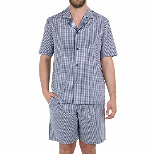 Eminence Pyjama Court Polo Team Ropa Interior de Deporte, Bleu (Carreaux Rose Vichy Marine), Medium para Hombre