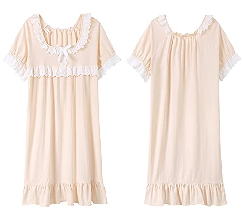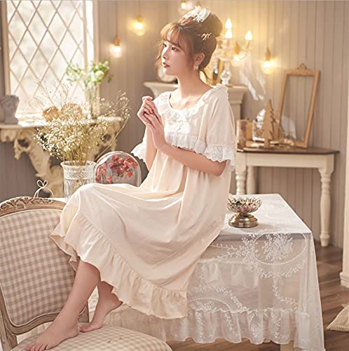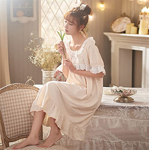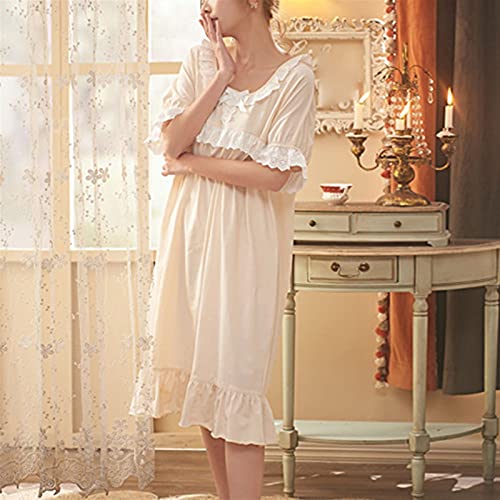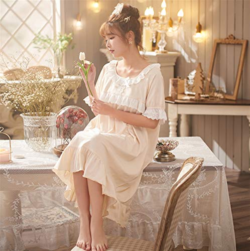 WAWAYU Pijamas de Mujer, Verano Jacquard algodón Pijamas Mujeres Elegante Estilo casero Ropa de Manga Corta Falda de Noche de Encaje en el hogar (Size : Medium)