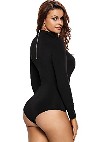 YALI Cuello Alto Largo Entrepierna Perfil Apertura Pijama Pieza Ajustada Tramo Tejer Muñeca,Negro,S