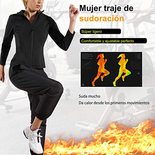 - Compocisión de fibra de plata lo cual puede formar rápidamente reflexión del calor y circulación de calor. Nuestra ropa deportiva te ayuda sudar 5 veces en comparación de otro material de conjunto de chándal para fitness, mientras que chaqueta de sudoración y pantalón deportivo son súper ligeros.