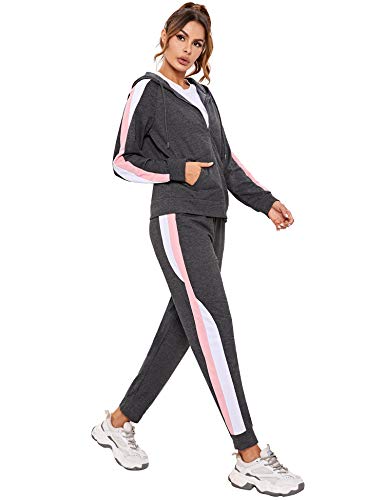 - 【Diseño clásico】 Conjunto de chándal para mujer de dos piezas, compuesto por: top e inferior. Tops: abrigo de manga larga con casquillo, pantalones: diseño de rayas, dos bolsillos laterales, cordón ajustable en la cintura, aseguran un ajuste cómodo.