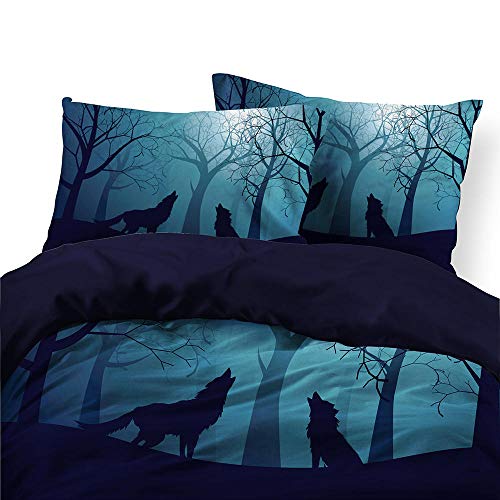 WZSZSA Juego de Funda de Edredón 220x240cm Lobo Animal de la Selva Negra Impresa en 3D,Juego de Ropa de Cama 3 Piezas 1 Funda Nórdica y 2 Funda de Almohada,Cierre de Cremallera Microfibra