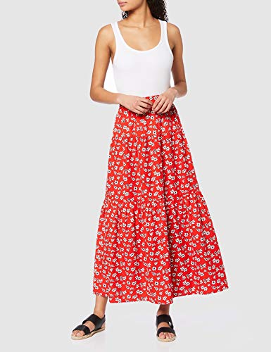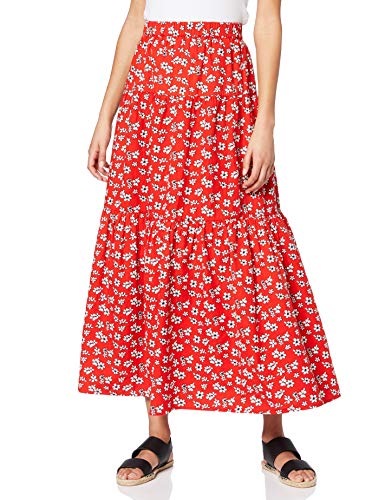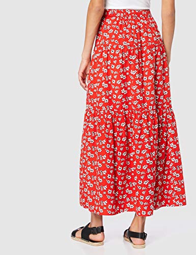 Marca Amazon - find. Falda Vaquera Larga de Flores Mujer, Multicolor (flores rojas)., 38, Label: S