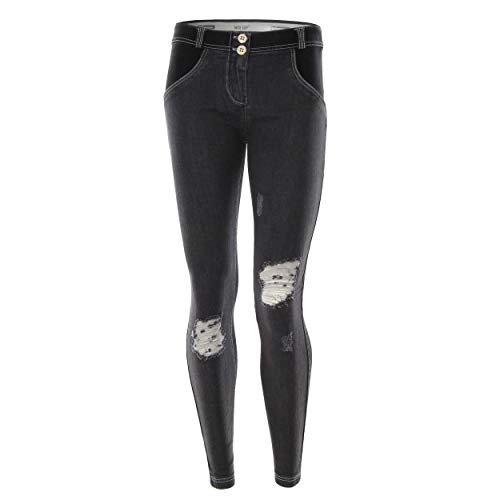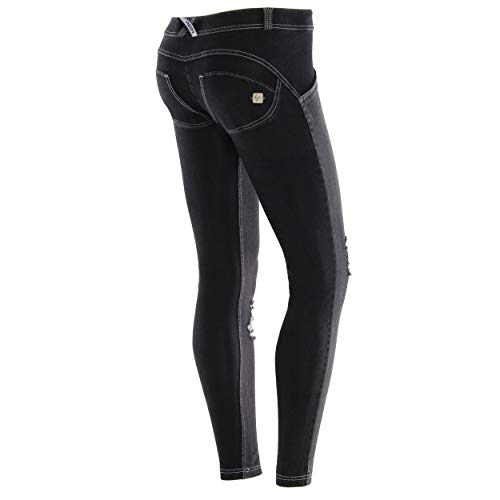 Freddy WR.UP® Pitillo de Talle bajo con Parte Delantera de True Denim con Rotos - Jeans Negro-Costuras Gris - Large