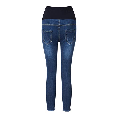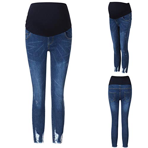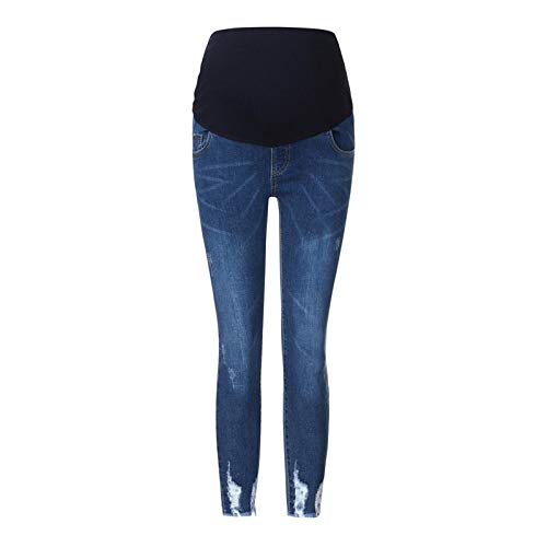 NPSJYQ Premamá Invierno Vaquros Rotos Leggins Abrigos Embarazo Maternidad Pantalones Pitillo Jeans sobre Los Pantalones Elásticos Verano para Mujer Pantalones Vaqueros Rasgados (Azul, XXL)