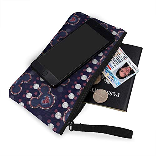 Cartoon Mickey Mouse Fuerte resistente al desgaste, ligero y portátil multifuncional cremallera lona monedero cosmético bolsa tarjeta embrague para mujer