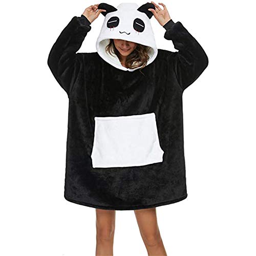 Holatee Sudaderas con Capucha, diseño de Panda con Capucha, Manta Suave de TV, Grande,Manta de Franela,Gruesa,cálida y con Bolsillos Grandes (Negro, L)
