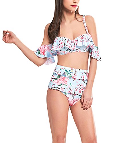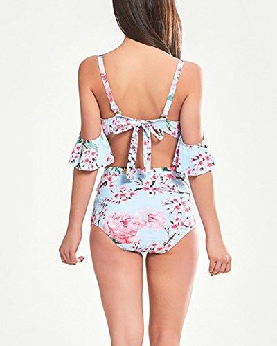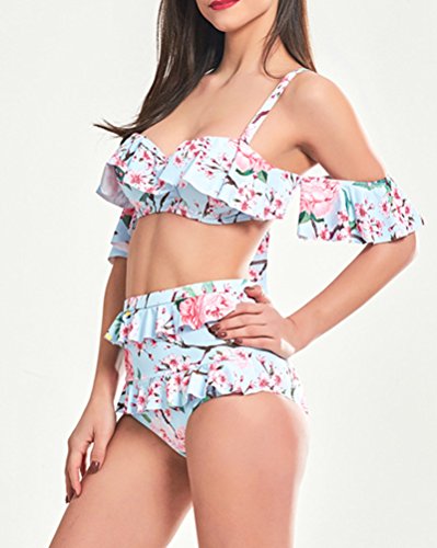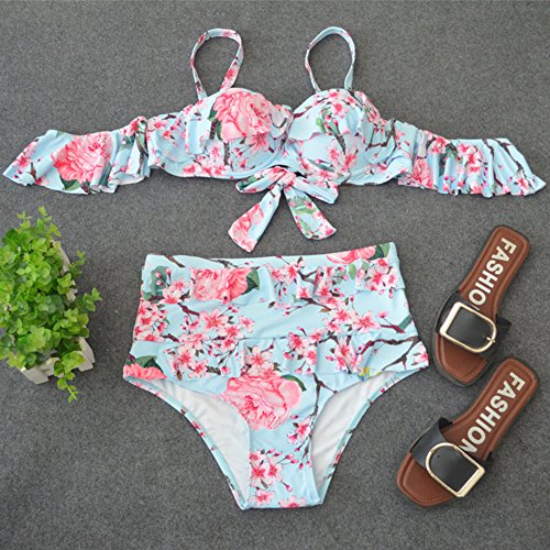 Bikini para Mujer Volantes De Moda De Talle Alto Push Up Traje De BaƱo Bikinis Azul S