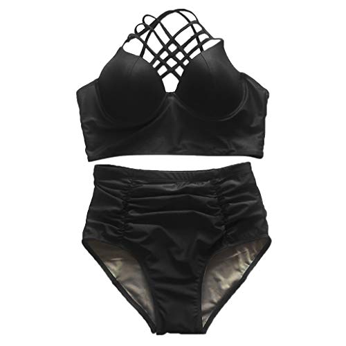 YEBIRAL Traje de Baño Bikinis Mujer 2019 Tallas Grandes Brasileños Push up Cuello en V Cintura Alta Bikini Sets Bañador de Dos Piezas Bikini(XL,Negro)