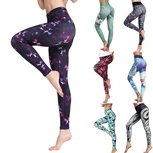 bayrick Mallas de Deporte de Mujer,Pantalones Calientes de la Yoga de la Venta de la Celebridad de Internet,Pantalones de Yoga Imprimir Pantalones de Cintura Altos de algodón estirado-Negro_XXL