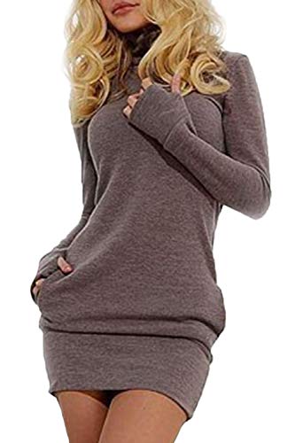 Las Mujeres En Otoño Sudaderas Vestido Casual De Largas Mangas Cuello Alto Especial Estilo Slim Fit Pullover Camiseta Vestidos Otoño Invierno (Color : Grau, Size : M)
