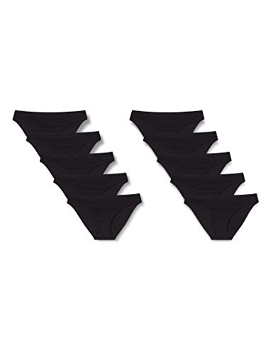 Iris & Lilly Braga de Bikini de Algodón Mujer, Pack de 10, Negro (Black), XS, Label: XS
