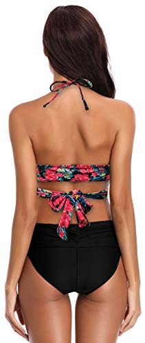 SHEKINI Bikini de Traje de baño de Colores Oscuros para Mujer Bikini de Tirantes Bikini de Cintura Alta de Dos Piezas (Negro-B, L)