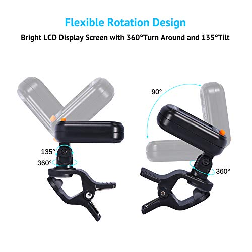 - ∮ Afinador de clip cromático: Afinador de guitarra con pantalla electrónica LCD cromática digital, clara y fácil de identificar que le permite ver y leer fácilmente la pantalla desde cualquier ángulo, ya sea de noche o con luz reflejada