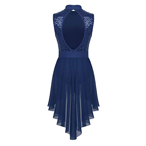 Agoky Vestido Danza Ballet con Lentejuelas Sin Manga Falda Tutu Maillot Ballet Traje Ropa de Baile Verano para Mujer Adulto Azul Marino Medium
