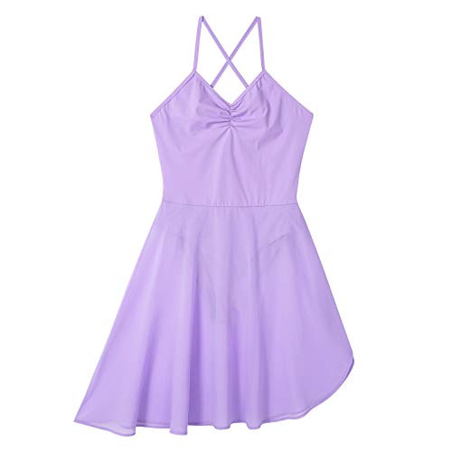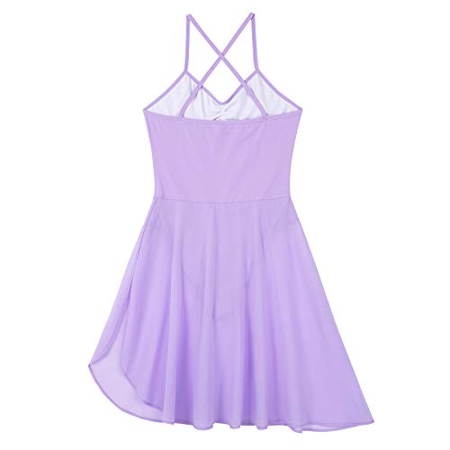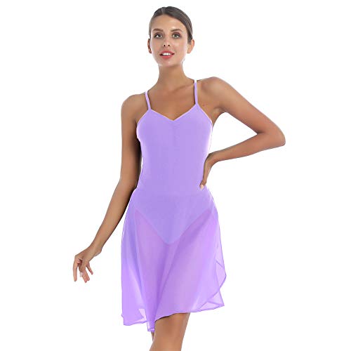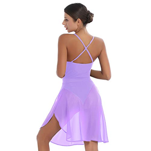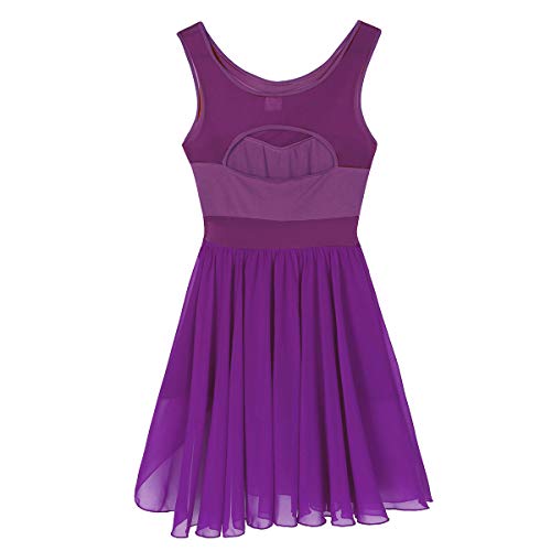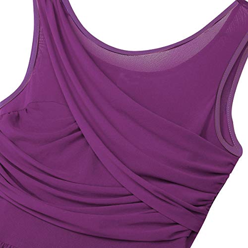 Agoky Vestido de Ballet Mujer Falda Irregular de Gasa Vestido de Baile Latino Moderno Maillot sin Mangas Leotardo de Gimnasia Rítmica para Chica Adulta Morado S